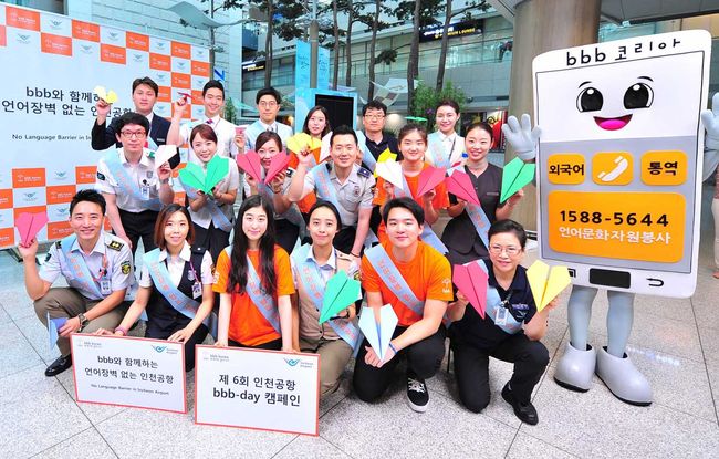 인천국제공항공사(사장 박완수)는 세계 최초 언어·문화 분야 NGO단체인 bbb 코리아(회장 유장희)와 함께 제6회 bbb-day 캠페인 ‘언어장벽 없는 인천공항 만들기’를 6일 진행했다고 밝혔다.