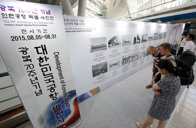 먼저 이달 31일까지 인천공항 교통센터 지하 1층에서 광복 70주년 기념 특별 사진전이 열린다. 이번 사진전은 대한민국과 공항의 발전사가 담긴 총 40점의 사진을 국·영문 설명과 함께 전시하여 인천공항을 찾는 국내·외 방문객들이 쉽게 이해할 수 있도록 했다.