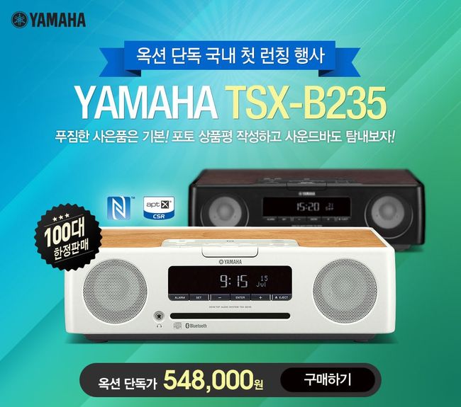 야마하뮤직코리아 음향기기그룹 전준근 팀장은 "옥션에서 가장 먼저 100대만 단독으로 출시하는 야마하 데스크톱 오디오 TSX-B235는 블루투스와 전용 앱으로 무선 재생과 원격 조작이 가능한 기능을 탑재해 사용자의 편리성을 증대시켜 언제든 편안하게 음악을 즐길 수 있게 했다"며, "고음질의 사운드는 물론 디자인적 요소까지 갖춰 음악 애호가들과 신혼부부들의 눈과 귀를 만족시킬 수 있는 일석이조의 상품이 될 것이다"고 말했다. /letmeout@osen.co.kr