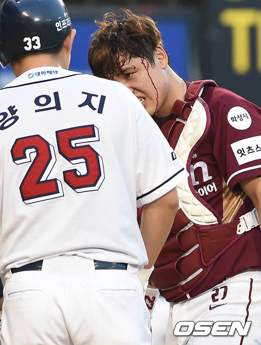 지난 7일 잠실 두산-넥센전에서 넥센 포수 박동원은 3회말 선두타자 양의지의 스윙 후 방망이에 머리를 맞았다. 박동원은 헬멧을 쓰고 있었음에도 머리에서 꽤 많은 피를 흘리며 고통을 호소했고 바로 교체돼 치료를 받았다. 후유증이 올 수 있는 머리 쪽이기에 주전 포수의 부상은 넥센에 당분간 타격이 될 것으로 보인다.