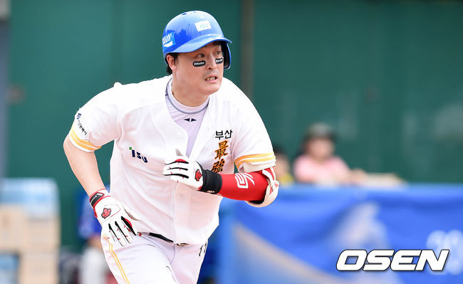 1회초 무사 2,3루 부산 이수화학 정현준이 2타점 2루타를 치고 주루하고 있다.