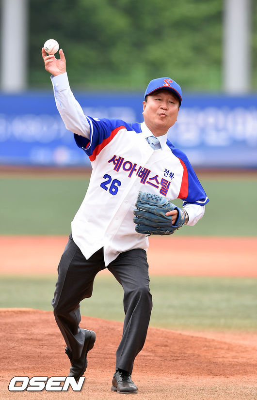 경기시작전 세아베스틸 박준부 이사가 시구하고 있다.