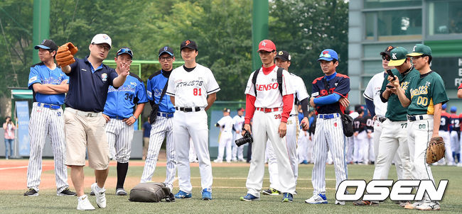 경기시작전 진행된 야구클리닉에서 차명주 육성위원이 이야기하고 있다.