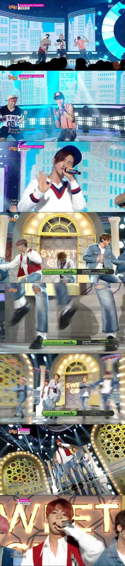 B1A4는 8일 방송된 MBC '쇼! 음악중심'에서 신곡 '스위트걸'로 무대를 꾸몄다.