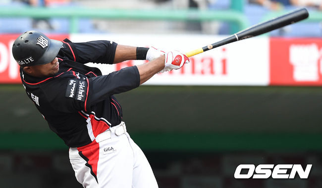 1회초 1사 1루 kt 마르테가 투런을 치고 있다.