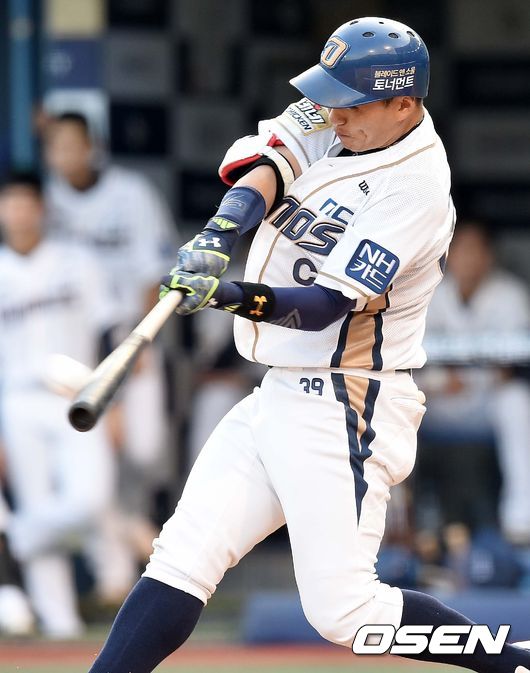 2회말 NC 공격 선두타자로 나선 이종욱이 우월 솔로포를 날리고 있다.