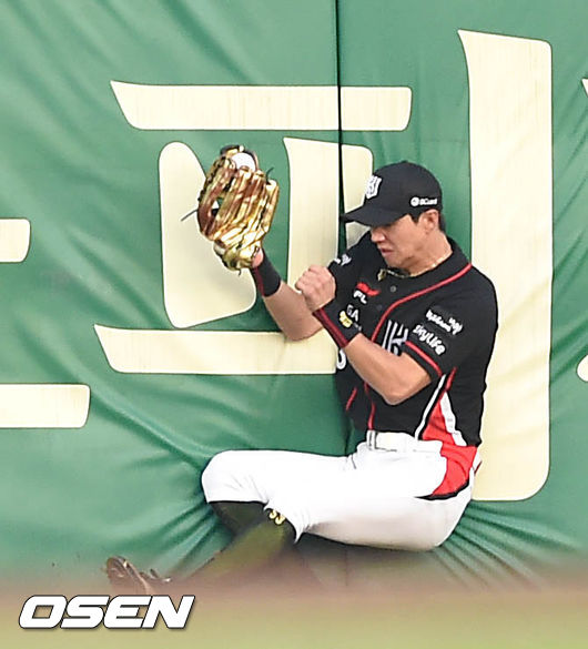 이대형,'몸을 아끼지 않는 펜스플레이'