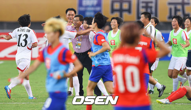 경기종료 후 북한 김광민 감독이 선수들과 기뻐하고 있다. / soul1014@osen.co.kr
