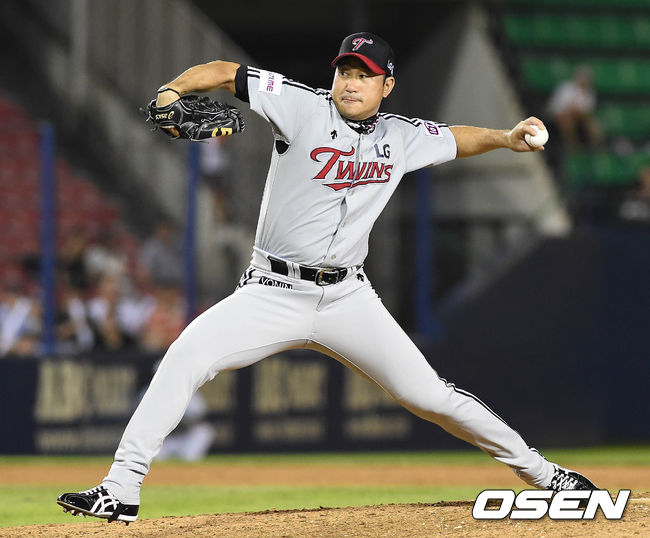 8일 오후 서울 잠실구장에서 열린 '2015 타이어뱅크 KBO 리그' 두산 베어스와 LG 트윈스의 경기 9회말 마운드에 올라온 봉중근이 역투하고 있다.