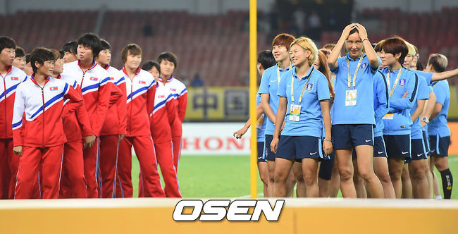 시상식에서 북한대표팀과 한국대표팀이 이야기를 나누고 있다. / soul1014@osen.co.kr