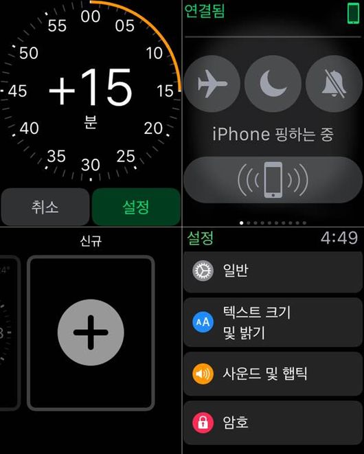 당장 포스터치(Force Touch) 기능이 가미된 초기 화면이 그렇다. 12인치 신형 맥북에 처음 탑재된 포스터치 기능은 이제 애플의 상징 기술이 됐다. 여전히 직접 경험하고 느껴보지 않으면 설명이 불가능하지만 압력 정도를 인지하는 포스터치를 통해 시계 페이스라 할 수 있는 첫 화면을 바꿀 수 있다. 그날의 기분, 개인의 취향, 옷차림에 따라 다양한 모습으로 연출된 시계 화면을 접할 수 있다.