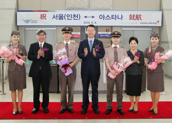 이번 인천~아스타나 첫 취항 편에 앞서, 아시아나는 지난 8일 오후 6시 인천국제공항 여객터미널 3층 출국장에서 김수천 아시아나항공 사장이 참석한 가운데 취항식을 가졌다.