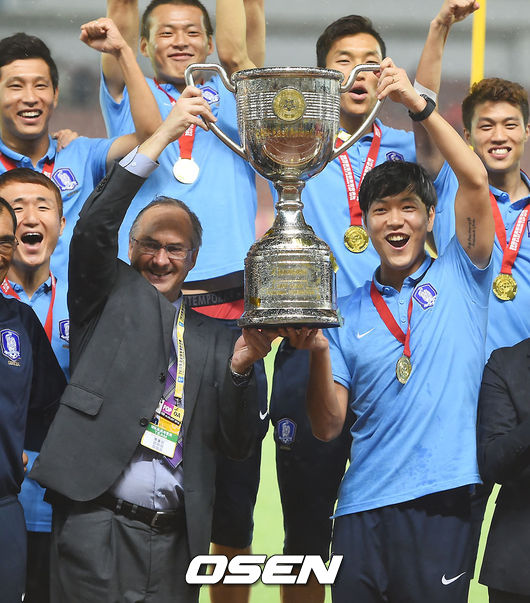 울리 슈틸리케(61) 감독이 이끄는 남자 축구대표팀은 9일(한국시간) 중국 우한 스포츠센터 스타디움서 끝난 2015 동아시아축구연맹(EAFF) 동아시안컵서 정상에 올랐다. 1승 2무(승점 5)를 기록한 한국은 중국과 북한(이상 승점 4), 일본(승점 2)을 따돌리고 2008년 이후 7년 만에 대회 우승컵을 들어올렸다.