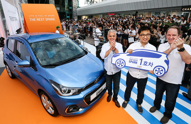 이와 관련 쉐보레는 8일, 서울 코엑스 (COEX)에서 한국지엠 세르지오 호샤(Sergio Rocha) 사장, 마크 코모(Marc Comeau) 영업•A/S•마케팅부문 부사장, 이경애 마케팅 전무를 비롯한 임직원들이 참석한 가운데 더 넥스트 스파크 1호차 전달식을 갖고 대규모 고객 체험 마케팅의 시작을 알렸다.