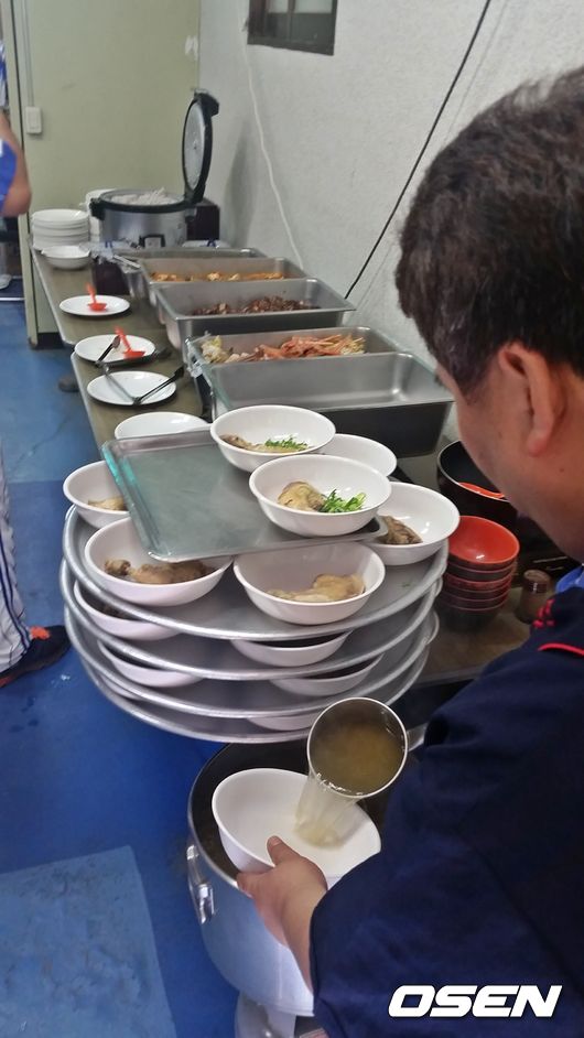 9일 대구 넥센전을 앞두고 구단의 허락 하에 1군 선수단 식당을 둘러봤다. 입이 쩍 벌어질 만큼 제대로 준비돼 있었다. 식사 뿐만 아니라 수박 화채까지. 선발부터 중간, 마무리까지 탄탄한 삼성의 마운드와 같이 하나부터 열까지 완벽 그 자체였다.