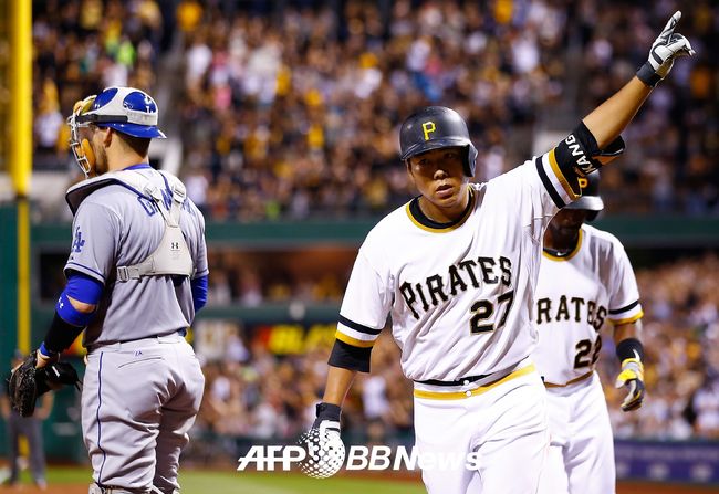 [OSEN= LA(미국 캘리포니아주), 박승현 특파원]피츠버그 파이어리츠 강정호가 시즌 9호째 홈런을 날렸다. 팀의 다저스3연전 싹쓸이를 자축하는 홈런이었다.