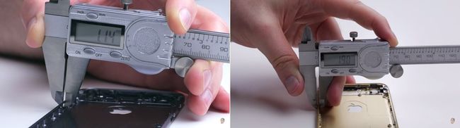 특히 구부러짐 현상이 일어났던 부분인 불륨 버튼 부분의 두께가 1.14에서 1.90mm로 거의 2배 가까이 차이 났다. 겉으로는 보이지 않지만 케이스 두께를 두껍게 만들면서 아이폰 6S에서는 벤드게이트 문제를 해결한 것으로 보인다.