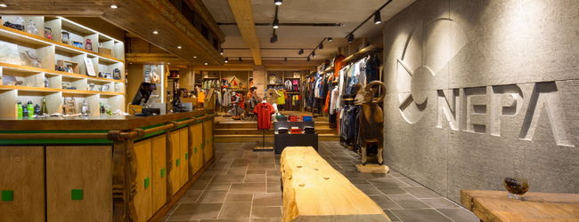 네파 샤모니 플래그십 스토어는 세계 각국 아웃도어인들이 정보를 나누던 샤모니의 중심지이자 랜드마크로 불리던 펍(Pub)인 슈카(Le Choucas)를 리모델링하여 매장의 상징적인 의미를 더했다. 네파는 슈카 특유의 분위기와 콘셉트를 최대한 유지함으로써 샤모니를 찾는 아웃도어인들이 친숙하고 편안하게 쇼핑할 수 있는 쾌적한 공간으로 매장을 꾸몄다.