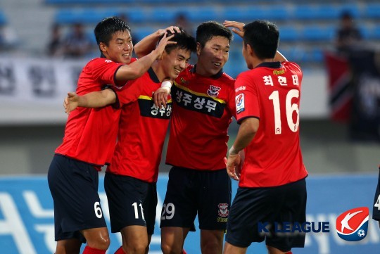 상주는 12일 상주시민운동장에서 벌어진 현대오일뱅크 K리그 챌린지 2015 26라운드에서 서울 이랜드FC와 1-1로 비겼다. 선두 상주(14승5무5패, 승점 47점)는 2위 서울 이랜드FC(11승6무6패, 승점 39점)와의 승점 차를 8점으로 유지했다.