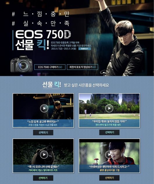 캐논은 EOS 750D 영상 조회수 200만 뷰 돌파를 기념해 4가지 에피소드에 어울리는 사은품을 증정하는 'EOS 750D 선물 킥' 이벤트를 진행한다.