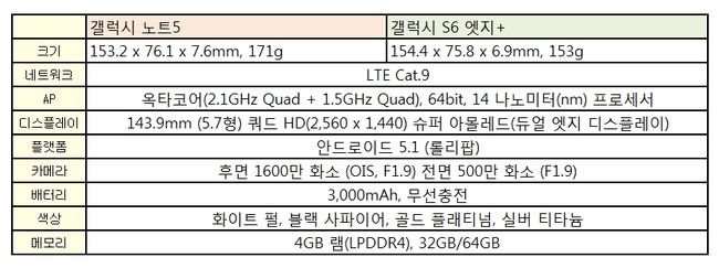 한편 '갤럭시 노트5'와 '갤럭시 S6 엣지+'는 화이트 펄, 블랙 사파이어, 골드 플래티넘, 실버 티타늄의 4가지 색상으로 출시된다.