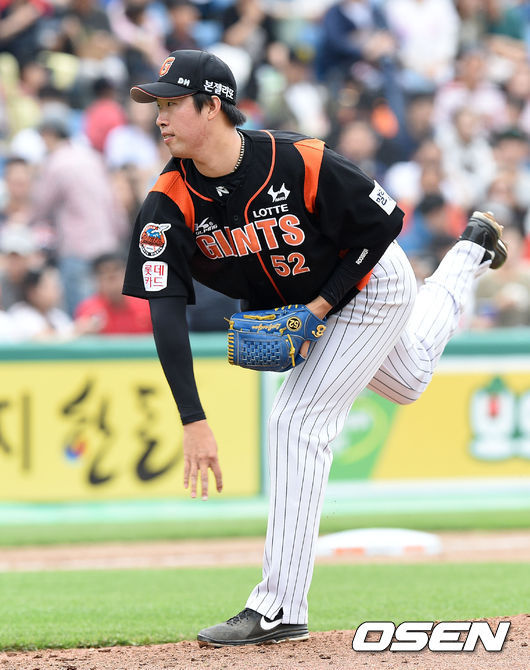 롯데 자이언츠 사이드암 이재곤이 제구난조로 아웃카운트 1개만 잡고 마운드를 내려갔다.