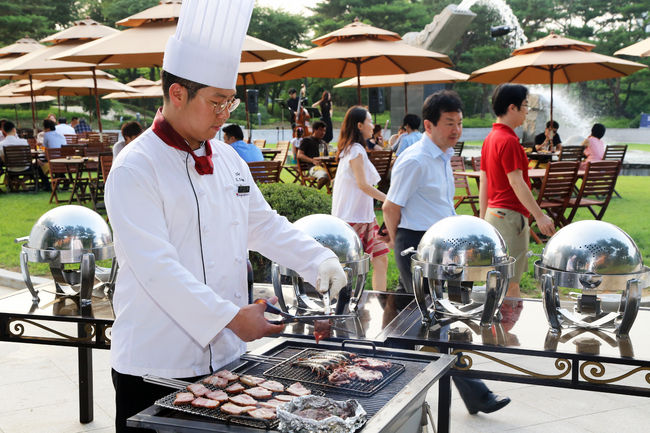 서초구 양재동 더케이호텔서울(사장 강병직)은 분수광장에서 'BBQ Beer 파티'를 열고 있다. 이번 파티는 이용객들에게 도심 속 자연에서 신나는 라이브 음악을 들으며 각종 바비큐와 맥주를 부담 없이 즐길 기회를 제공하고자 기획됐다.