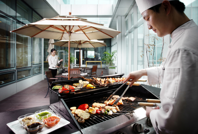 여기에 라이브 그릴 요리 비롯해 사우어 크림을 곁들인 달콤한 새우와 계절 채소 및 과일로 만든 샐러드 등 총 22종의 다양한 메뉴를 제공한다. 특히 라이브 그릴 요리의 경우 LA갈비, 삽겹살, 안심, 등심, 양갈비, 왕새우 등의 최고급 재료를 특급호텔 셰프가 손님이 보는 앞에서 직접 구워 맛과 분위기를 더한다.