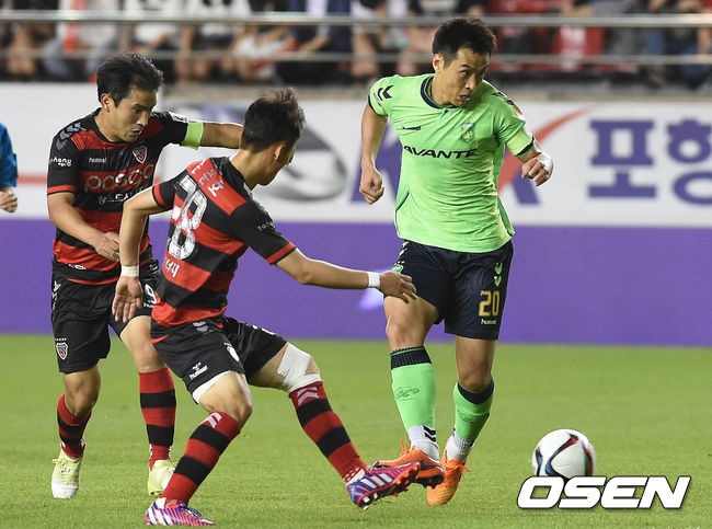 포항은 전반 17분 고무열의 왼발 중거리 슈팅이 권순태의 손끝에 걸렸다. 1분 뒤에는 티아고의 우측면 크로스를 문전에 있던 김광석이 발에 맞혔지만 권순태의 벽에 막혔다.