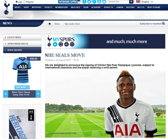 토트넘이 은지예의 영입으로 공격진을 보강했다. 토트넘은 15일(이하 한국시간) 공식 홈페이지를 통해 "은지예를 영입했다"고 발표했다. 이에 따르면 토트넘은 은지예와 2020년까지 5년 계약을 체결했다.
