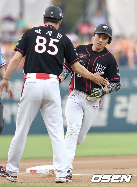 오정복의 첫 홈런이 나온 것은 2회초. 팀이 2-0으로 앞서던 2회초 2사 2, 3루에 나온 오정복은 상대 선발 이민호를 상대로 볼카운트 3B-2S에서 7초째를 공략해 좌측 담장을 넘기는 스리런홈런을 터뜨렸다. 이 홈런으로 5-0을 만들며 kt는 초반 흐름을 완전히 쥐었다.