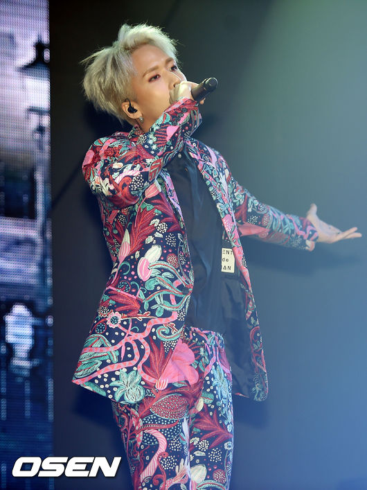 17일 오후 서울 마포구 서교동 홍대 예스24 무브홀에서 열린 빅스 유닛 LR 쇼케이스, 빅스 LR의 라비가 열창을 하고 있다.