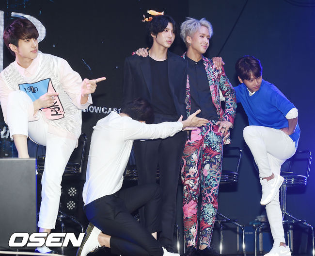 17일 오후 서울 마포구 서교동 홍대 예스24 무브홀에서 열린 빅스 유닛 LR 쇼케이스, 빅스 LR이 빅스 멤버들과 함께 포토타임을 갖고 있다.