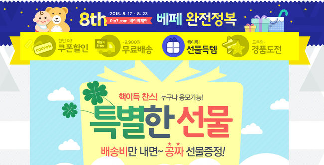 제로투세븐닷컴에서는 2011년부터 매년 온라인 베이비 페어를 진행해 오고 있다. 오프라인 베이비 페어에 버금가는 다양한 상품구성과 혜택으로 육아맘들 사이에선 놓쳐서는 안 되는 쇼핑 축제로 입소문을 타고 있다.