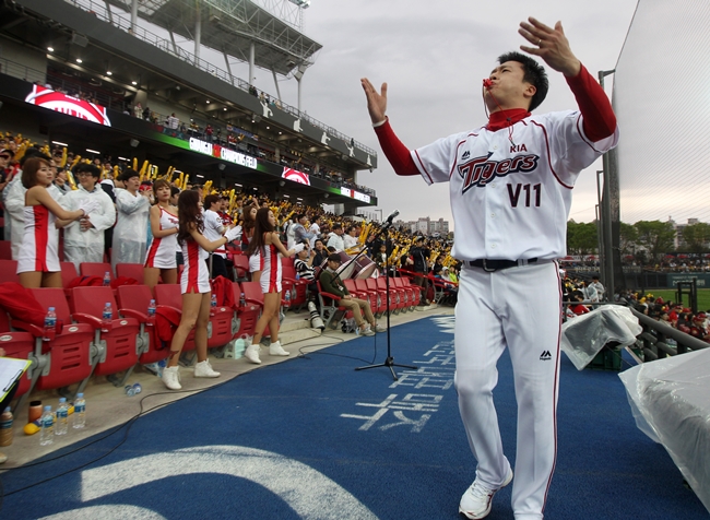 KIA는 현재 치열한 5강 싸움을 벌이고 있다. 시즌 초 최하위까지 예상됐지만 김기태 감독을 필두로 선수들은 그 평가를 완전히 뒤집고 있다. 나윤승 응원단장 역시 김 감독과 선수들에게 고마움을 느낀다. 그는 “선수들이 너무 재미있는 경기를 많이 해주신다. 광주에선 끝내기도 정말 많이 나왔다. 선수들에게 미안하지 않기 위해 더 노력하고 있다”면서 “팬 분들도 지고 있어도 끝까지 함께 해주신다. 좋은 자리를 만들어주시는 것이기 때문에 보답하기 위해 더 열심히 해야 한다는 생각을 항상 가지고 있다”라고 말했다.