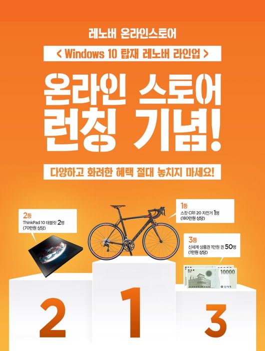 한국레노버는 프로모션 기간 동안 해당 제품을 구매한 소비자들 중 추첨을 통해 1등 1명에게 180만원 상당의 스캇 CR1 20 프리미엄 자전거, 2등 2명에게 씽크패드 10, 3등 50명에게 상품권을 제공한다. 이 외에도 노트북과 울트라북 전 라인에 대해 최대 15% 할인 행사와 주변기기 50% 할인 행사를 함께 진행한다.