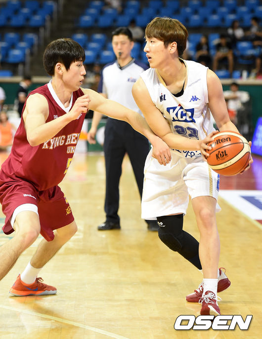 김민구는 18일 잠실학생체육관에서 벌어진 ‘2015 KCC 프로-아마 최강전’ 2라운드 KCC 대 경희대전 4쿼터 중반 코트를 밟았다. 지난 6월 음주운전으로 교통사고를 내 물의를 일으킨 뒤 첫 공식경기 출전이었다.