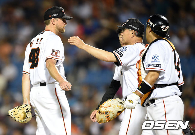 5회 지석훈에게 던진 5구 129km 체이지업이 가운데 몰린 실투가 되며 좌월 홈런으로 첫 실점했지만, 이후에도 내야 땅볼을 침착하게 유도하며 안정감을 이어갔다. 7회까지 95개의 공으로 투구수 관리도 잘 이뤄졌다. 윤규진이 컨디션 난조로 빠진 한화 불펜 사정을 감안할 때 더욱 빛났다.