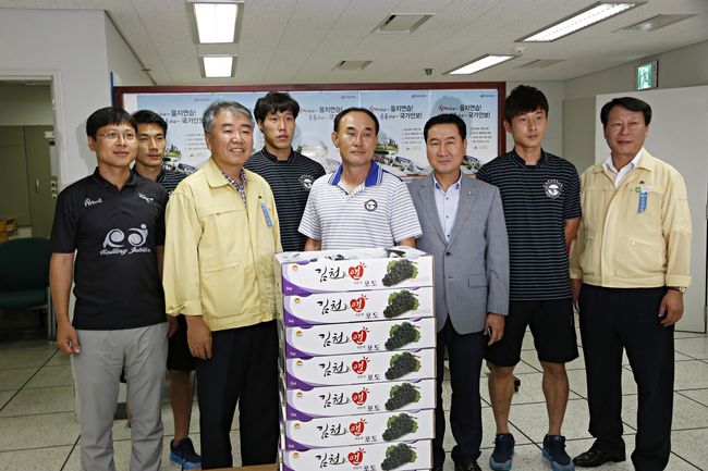 김학범 감독과 장학영, 김철호, 김태윤 등 성남FC 선수단은 을지훈련 기간인 18일 오후 3시 성남시청 을지훈련장을 깜짝 방문해 훈련에 매진하고 있는 시 관계자들에게 떡과 과일 등을 전달하는 시간을 가졌다.