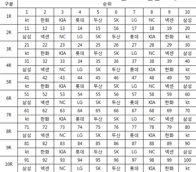 ▲ 2016 KBO 신인 드래프트 지명 순서