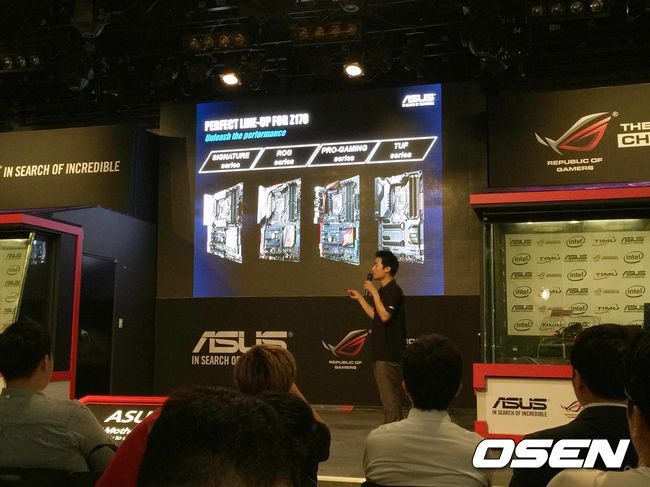 에이수스는 이날 행사에서 총 10여 종에 달하는 Z170 시리즈 마더보드 제품들과 2종의 체험 시스템, 그리고 최신 그래픽 카드 제품 군까지 현장에 전시, 방문자들의 이목을 집중시켰다.