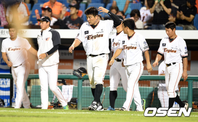 19일 NC전이 끝난 후 이글스파크에는 타격 훈련을 위한 장비들이 하나둘씩 세팅되기 시작했다. 오후 10시3분이 되자 김성근 감독을 비롯해 야수들이 방망이를 들고 그라운드에 나타났다. 정근우와 김경언을 비롯해 최진행·정현석·강경학·박노민까지 6명의 선수가 등장했다.
