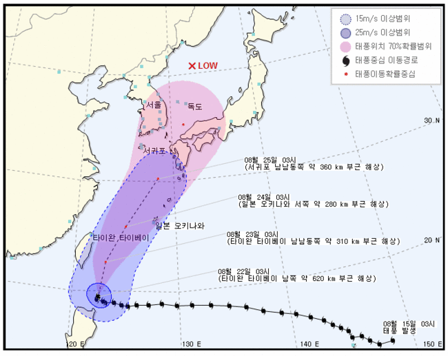 15호 태풍 '고니'는 이제 대만 앞바다에서 제주도 쪽을 향해 완전히 방향을 잡았다.