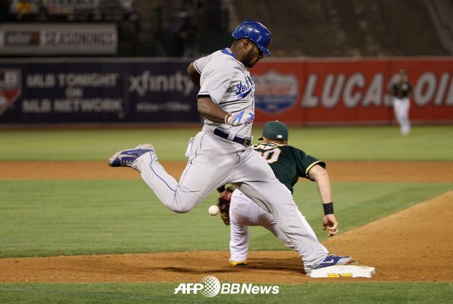 푸이그는 지난 19일 오클랜드 어슬레틱스와 원정경기 도중 우측 햄스트링 부상을 당했다. 8회 2사 후 유격수 앞 내야 안타를 친 뒤 1루쪽으로 전력 질주하다 당한 부상이었다(사진).