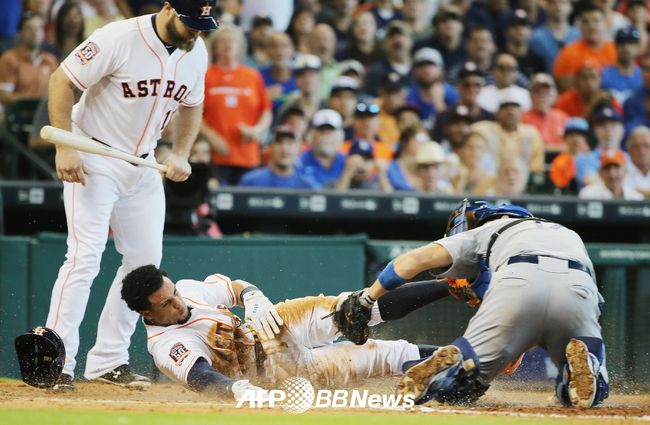 이어진 2사 1,3루에서 커쇼가 에반 개티스를 상대할 때 결정적인 장면이 나왔다. 볼카운트 1-2에서 4구째를 던지던 찰라 포수 A.J. 엘리스가 일어섰고 커쇼는 재빨리 투수 판에서 발을 뺀 뒤 볼을 던졌다. 휴스턴 3루주자 고메스가 홈에서 아웃. 홈스틸 실패였다(사진). 휴스턴이 비디오 판독을 요구했으나 판정은 번복되지 않았다.