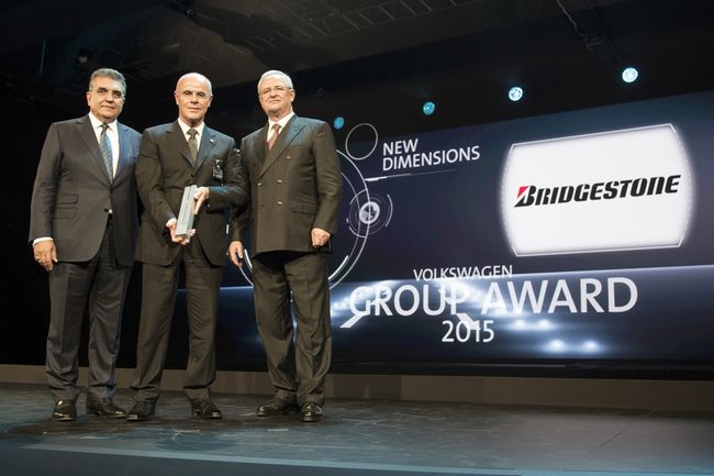 글로벌 타이어 기업 브리지스톤이 ‘2015 폭스바겐 그룹 베스트 협력사'로 선정됐다. 폭스바겐 그룹은 전세계 협력사 중 혁신적인 역량과 높은 신뢰성을 수행해온 협력 업체를 선정해 매년 시상하고 있다.