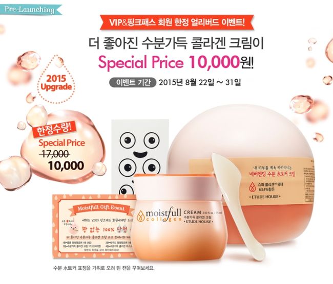 한편, 에뛰드하우스는 출시를 기념하여 수분가득 콜라겐 크림을 출시 전 특별한 가격으로 만나볼 수 있는 행사를 진행한다. 에뛰드하우스 VIP 혹은 핑크패스 회원은 수분가득 콜라겐 크림, 스페셜 스파츌러, 100% 당첨 스크래치 복권이 포함된 스페셜 키트를 1만원에 구매할 수 있다. 100% 당첨되는 스크래치 복권 1등에게는 홍콩 왕복항공권 1매(4명), 2등은 제주도 왕복항공권 1매(10명), 3등은 수분가득 콜라겐 크림 정품(1,000명), 4등 수분가득 콜라겐 마스크시트 정품을 증정한다. 해당 이벤트는 8월 22일부터 31일까지 전국매장(면세점 제외) 및 공식 온라인 쇼핑몰에서 한정 수량 소진 시까지 진행된다.