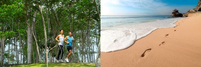 아름다운 경치를 즐기면서 이용객의 페이스에 맞춰 달리거나, 리조트 담당자의 조깅 지도하에 달릴 수 있다. 만약 좀더 강도가 높은 도전을 원한다면, 쿠부 비치 197개 계단을 내려갔다 올라오면서 신기록에 도전할 수도 있다. 발리 해변을 달리기한 이후, 무사히 완주한 자신에게 주는 상으로 스파(spa)에서 45분 코스의 스포츠 마사지를 받은 것으로 마무리된다.