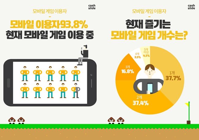 NBT(대표 박수근) 모바일 잠금화면 앱 캐시슬라이드가 20~40대 사용자 1202명을 대상으로 모바일게임에 관한 설문조사를 실시한 결과, 93.8%의 응답자가 현재 모바일 게임을 즐기고 있다고 답했다. 특히, 동시에 2개 이상 게임을 즐기고 있다는 응답은 62.3%에 달해, 모바일게임 시장이 성장을 거듭하고 있음을 반증하기에 충분했다.