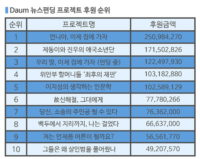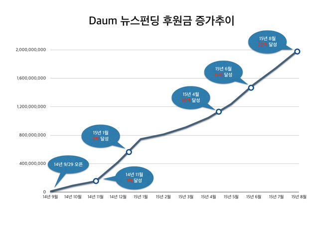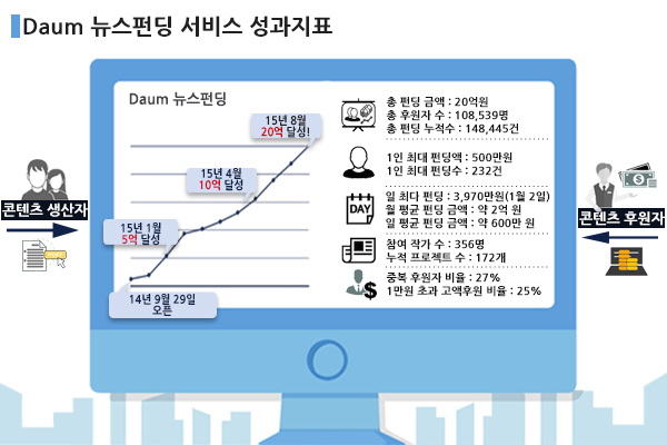다음 뉴스펀딩이 1년도 채 되지 않아 20억 후원금을 돌파하며 국내 콘텐츠 크라우드 펀딩 산업의 새 지평을 열고 있다.